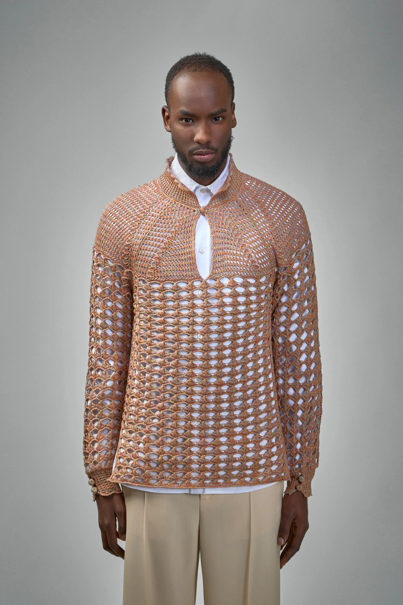 - v-shaped collar - button closure - crotched Materials: 100% cotton Color: ocra mouline SKU: 150757 Brand style: 6V0KC34AAUT Size and Fit The model is 1.89m (6.2ft) and wears a size M. The item fits as expected according to standard sizing. Order your usual size.