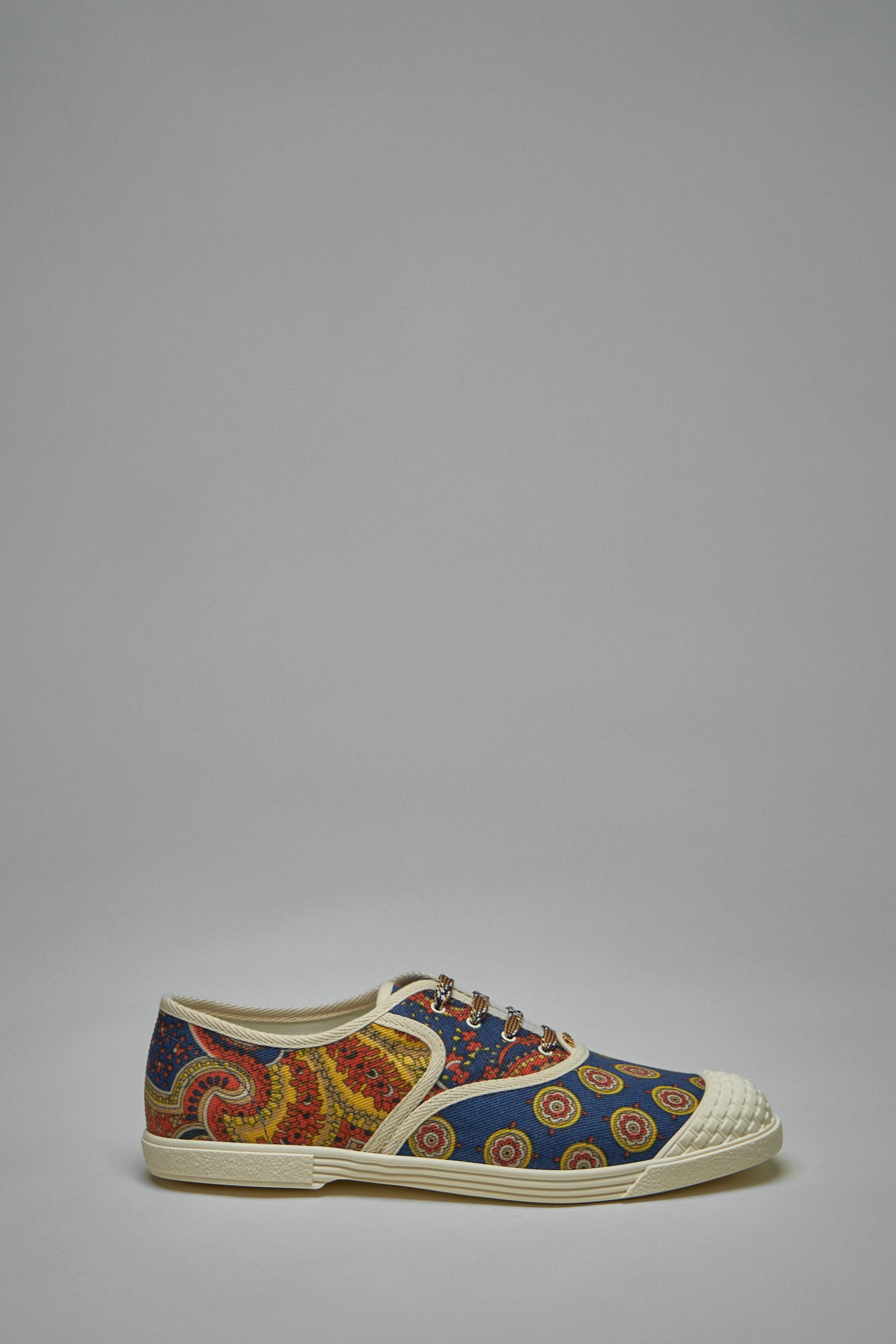 - round toe - lace-up closure - all-over print Materials: 100% fabric upper, 100% rubber sole Color: blue, red, ivory Made in Italy SKU: 148239 Brand style: 6Y2SOJ86RIQ 24398