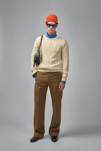 Sweater in beige cable-knit featuring a crew neckline and ribbed hem. It has long sleeves and a small gold logo plaque on the chest. Materials: 100% cotton Color: burro SKU: 151762 Brand style: 7V3C34SB1B