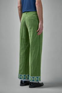 WASHED COTTON-LINEN VELVET PANTS WITH JACQUARD HEMS