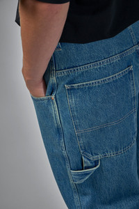 Wide-leg silhouette with a relaxed fit, providing a casual and comfortable style. Distinctive patch pocket and subtle branding add a modern touch. Ideal for a laid-back yet fashionable appearance. Materials: 100% Cotton Color: vintage blue SKU: 152128 Brand style: UH76DP250VB Size and Fit The model is 1.76m (5.8ft) and wears a size 30. The item has a looser cut but is not necessarily oversized. It’s intended for a comfortable and easy wear.