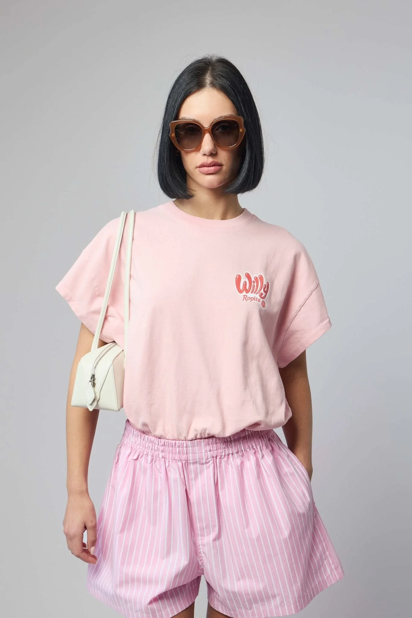 SKU: 153560 Brand style: WCJSY0225-073 T-shirt with a classic design featuring a small printed logo on the chest. The soft pink color offers a casual and comfortable look. - Short sleeves - Crew neck - Chest logo print - Solid color - Relaxed fit Materials: 100% Cotton Color: Chicle The model is 1.75m (5.7ft) and wears a size S. The item fits as expected according to standard sizing. Order your usual size.