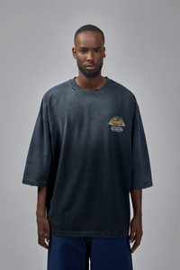 T-shirt in an oversized boxy cut with a crew neckline. Washed black color with a small chest logo and a large multicolor 'Chavarria Fresh Produce' back graphic including printed text and a phone number. Distressed holes at the collar, sleeves and hem create a worn-in look. Materials: 100% Cotton Color: black - nueva york SKU: 153069 Brand style: SS24WILLYLM055-1 Size and Fit The model is 1.89m (6.2ft) and wears a size M. The item has a looser cut but is not necessarily oversized. It’s intended for a comfortable and easy wear.