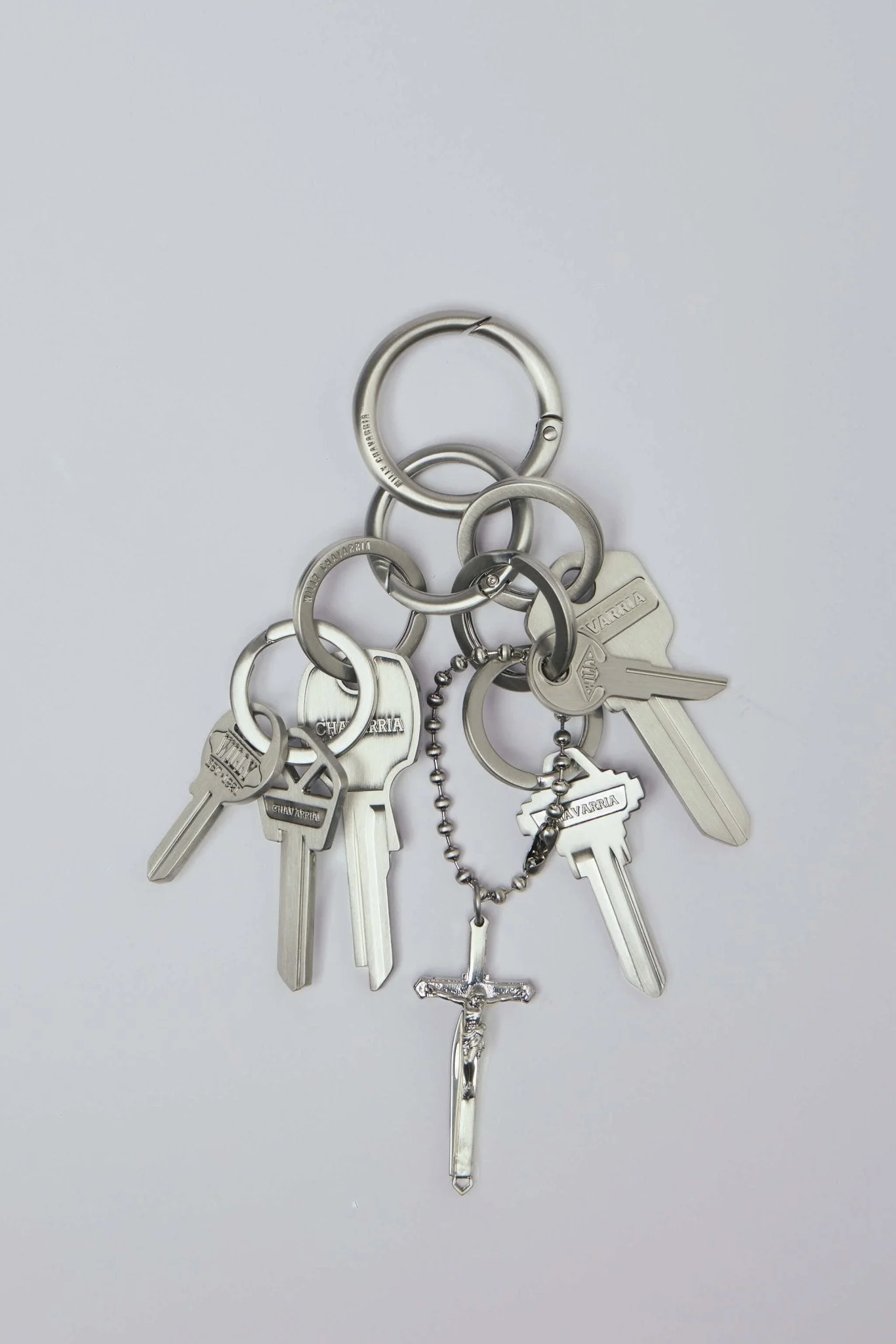 SKU: 153559 Brand style: WCJWL0008-087 Keychains featuring multiple metallic rings and an ornate cross pendant. The design offers both practical functionality and decorative appeal. - Multiple metallic rings - Cross pendant with detail - Interlinked key rings - Silver tone finish - Chain with small beads - Engraved text on rings Materials: N/A Color: Shiny Nickel The item fits as expected according to standard sizing. Order your usual size.