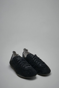 Streamlined, low-profile sneakers with a sleek silhouette and minimalistic design. Suede upper creates a sophisticated texture, while subtle stitching adds a refined touch. Ideal for casual or semi-formal ensembles, offering both style and comfort. Materials: 100% fabric upper, 100% rubber sole Color: black SKU: 152076 Brand style: JS2457