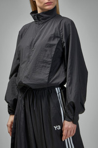 - stand-up collar - zip closure - short sleeves - striped detailing Materials: 100% nylon Color: black SKU: 150098 Brand style: JD1478 Size and Fit The model is 1.76m (5.8ft) and wears a size S. The item has a looser cut but is not necessarily oversized. It’s intended for a comfortable and easy wear.