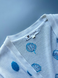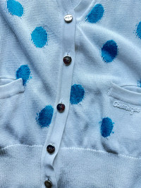 Courréges - Polka Dot Cardigan Size : 9 ( Bust 22” Length 27” Shoulder 19” ) - Vintage Courréges Piece - ‘ Courréges ‘ Embroidered on Front Pocket - Courréges Logo Button Condition as seen in pics No Exchange or Return