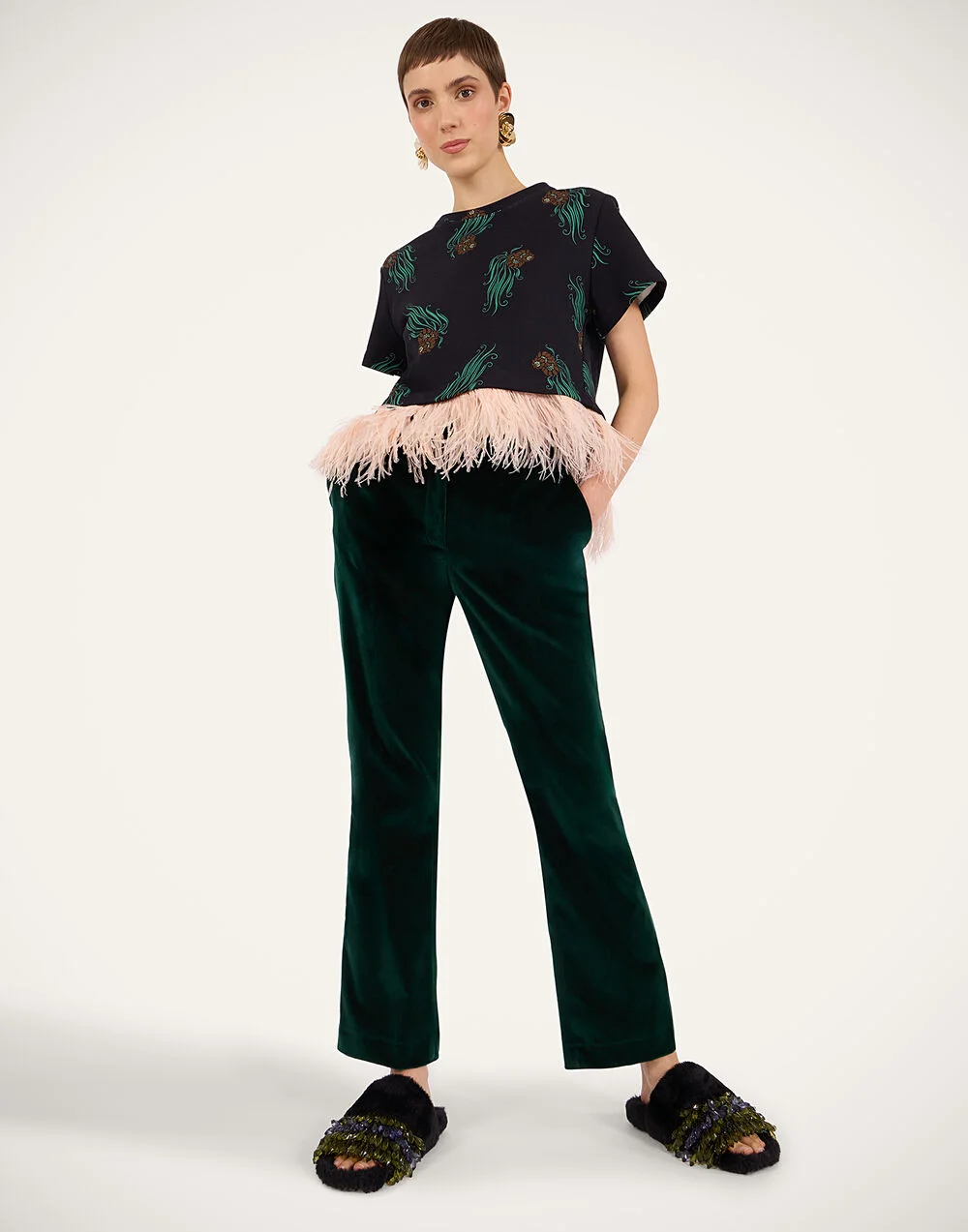 These pants were made for wow-ing. The 24/7 falls between our Hendrix Pant and Saturday Night Pant styles, and is infinitely flattering on all body shapes. Arriving in our solid petroleum coat velvet, they are perfectly primed for any party this celebratory season, but play just as nice with a crew neck for a coffee. Details & Fit - Regular Fit - Coat Velvet - Cigarette Cut - Slightly flared hem - 4 pockets - Ankle crop - Fly button and zip - Equipped with belt loops - Composition: 100% Cotton - Made in Italy - Garment length: 96cm - The model is 176 cm / 5′ 9″ tall and wears a size S