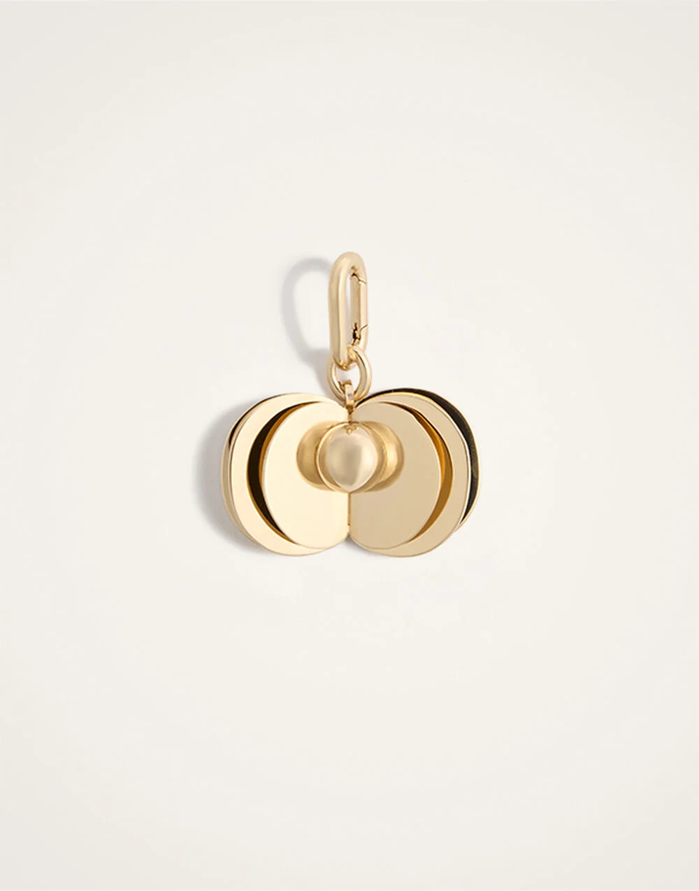 Delivered in this eye-catching gold color, the Aura Charm resembles a flower mid-bloom. A beautiful addition to any bracelet, necklace, keychain or even shoelace, this item is "charming" indeed. Details & Fit - 24K Gold Plated Brass - Charm form our Aura Family, designed with sacred geometric shapes in mind as another way to raise your vibration. - Lobster Clasp - Composition: 100% brass - Made in Italy