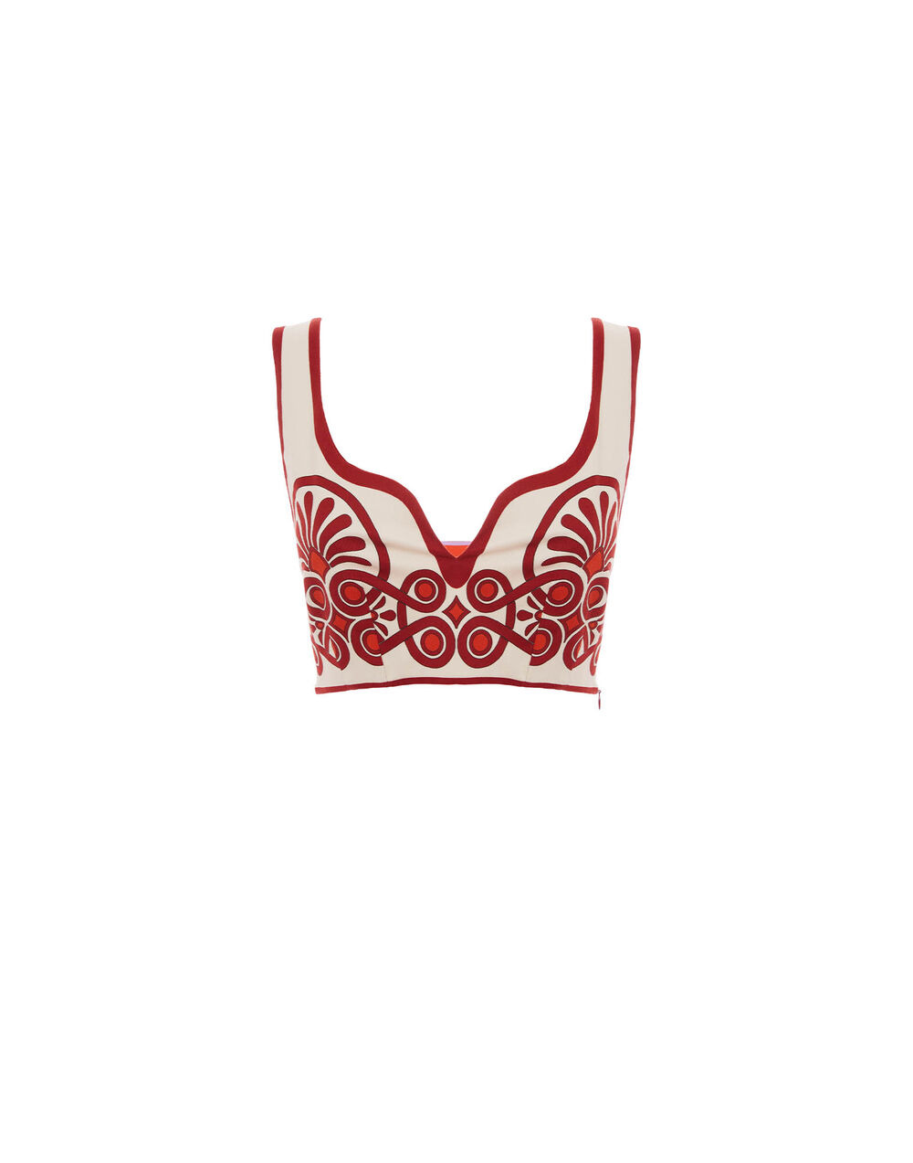 The bralette is rocketed to black tie status in this Baia Crop Top with a made-you-look neckline. Crafted in our structured cotton with a hint of stretch, this baby is meant for summer’s most fabulous palazzo parties styled with the Baia Skirt for instant impact but none of the effort. Also great under a white shirt for dinner or jeans on the everyday, let its bellissima hand-placed print set off your Positano glow! Details & Fit - Cotton stretch - Crop top - Hand-placed print - 100% Made in Italy - Composition: 97% Cotton 3% Elastane - The model is 180 cm tall and wears a size S - Garment length: 12cm