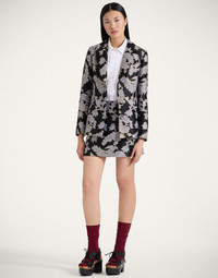 A new member of the bodacious Baia family, this mini is the perfect piece to elevate any autumn outfit. With a thigh-grazing shape, its high waistband is great for tall or petite heights alike, while this delicious jacquard has a structure-retaining easy elegance that is begging to travel. Wear her with bare legs or over tights for transitional season style. Details & Fit - Jacquard - Mini Skirt - High Waisted fit - Hits mid-thigh - Made in Italy - Composition:42% Polyester 22% Wool 22% Acrylic 8% Other Fibers 6% Silk - The model is 180 cm / 5′ 11″ tall and wears a size S