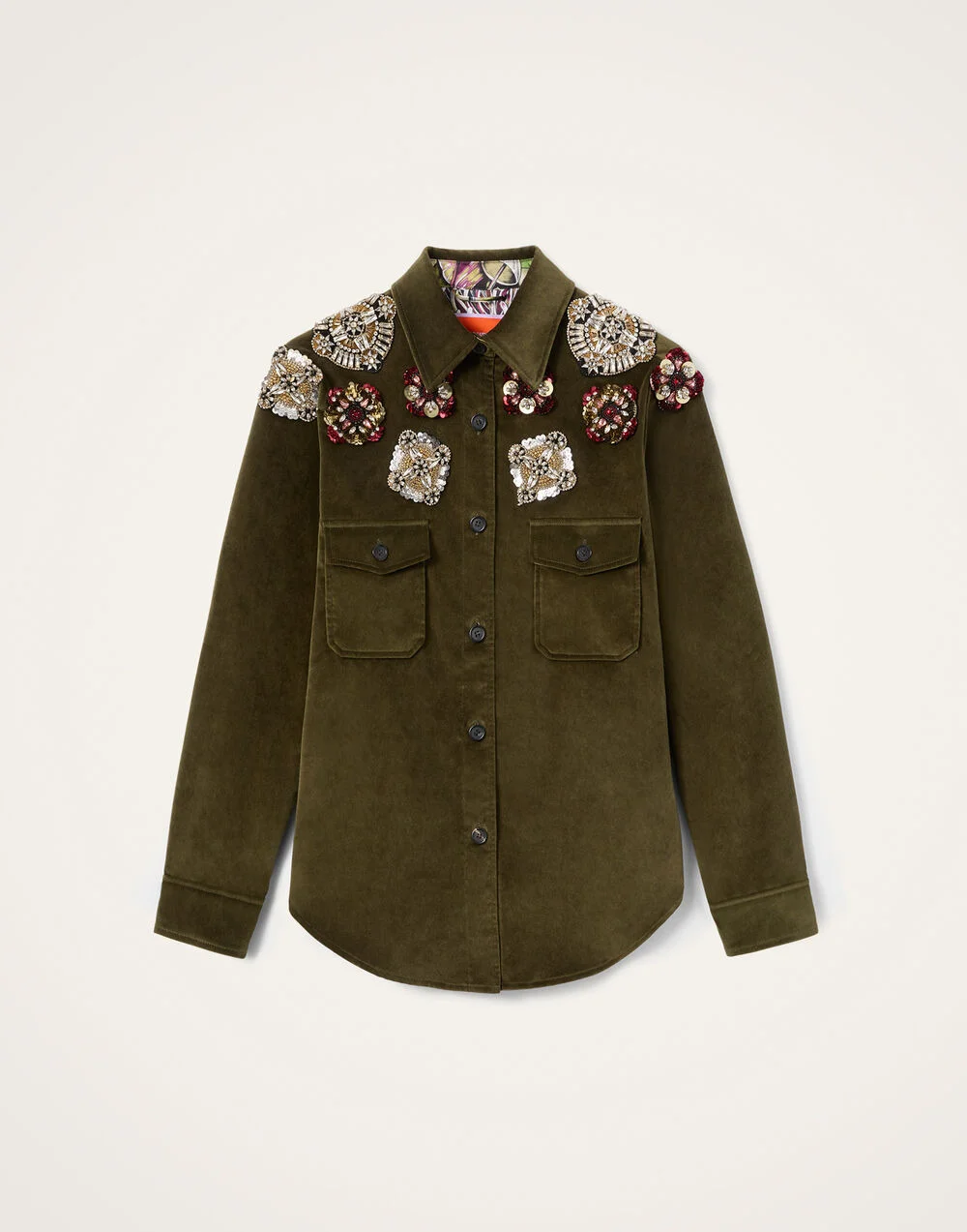 Just as we said with our BTYB Shirt, we’ll say it here too - this just might be the perfect jacket. Same tailored-in-all-the-right-places (but still roomy) fit, same laid-back luxurious feel. Crafted in this glorious embroidered coat velvet we’ll be wearing it over absolutely everything - jeans, silk dresses, a bathing suit, you name it. Details & Fit - Embroidered elvet Jacket - Collared - Monogrammed button - 100% Made in Italy - Composition: 100% cotton velvet