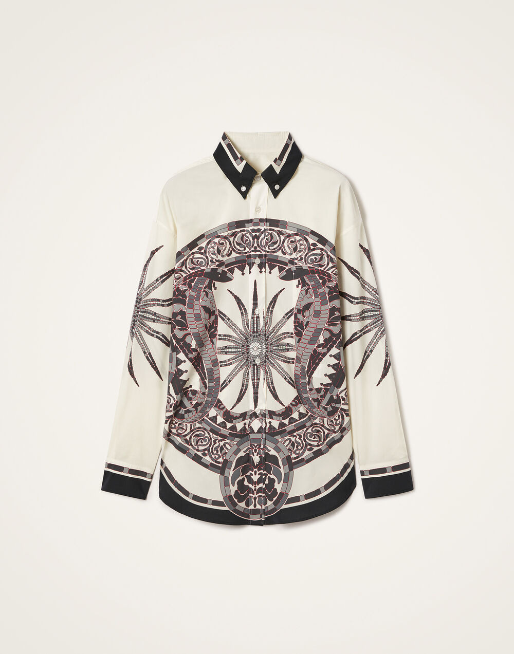 We’ll go ahead and say it - this just might be the perfect shirt. One that’s tailored in all the right places but still oversized enough to feel effortlessly laid back. Crafted in crisp cotton poplin in our hand-placed Cobra print, this beauty pops with pretty much anything - your favourite pair of jeans, a printed Pencil Skirt, over a bathing suit, or nothing at all! Just keep this one close to the chest….your boyfriend will want to steal it, we guarantee. Details & Fit - Cotton poplin - Oversized collared button down - Boxy fit - Garment length: 80cm - Made in Italy - Composition: 100% Cotton - The model is 178 cm / 5′ 10″ tall and wears a size S