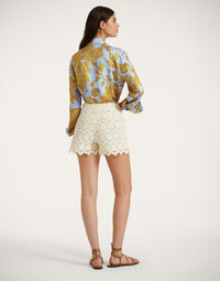 This classic, straight-cut button down shirt is timeless and matches virtually anything in your wardrobe. An LDJ evergreen, the fit is straight and feminine with slightly gathered sleeves that hit at the wrist and we’ve cut it in our glossy silk twill manufactured on the shores of Lake Como. We happen to think it looks very va-va-voom with our skirts and pants to match, but looks just as great with your favorite jeans - try it tucked in with the sleeves rolled up. Details & Fit - Silk twill - Loose fit - Silk covered buttons down front and on cuffs - Back box pleat - Curved bottom hem - 100% Made in Italy - Composition: 100% Silk - The model is 177 cm tall and wears a size S - Garment length: 66cm