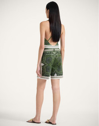 Never understood boyfriend shorts? Inspired by the queen of Milanese cool Viviana Volpicella, these have all the mannish construction details you’d expect - fly, pockets, belt loops - but in our hand-placed Mirage print hey feel totally feminine too. Cut from light and breezy cotton, they are a smidge oversized in a classic Bermuda shape. Do as Viviana would and wear them with a man's white shirt unbuttoned over a bikini and take them somewhere hot, hot, hot. Details & Fit - Cotton poplin - Viviana Volpicella capsule - Fly - Pockets - Belt loops - Bermuda shape - 100% Made in Italy - Composition: 100% Cotton - The model is 180 cm / 5′ 11″ tall and wears a size S