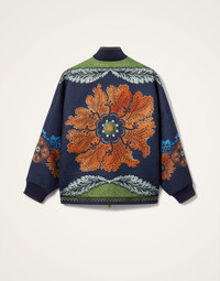 Debbie Harry called - she wants her bomber back. With a slouchy but structured fit with a slightly high-low hem and ribbed knit collar and cuff, this more tailored take on a classic jacket shape is how Italians do oversized outerwear. Crafted in virgin wool and hand-placed with bodacious blooms (don’t miss the one on the back), this ridiculously bellissima version is all about giving you a kick in the happy pants, whether you wear it with jeans and clogs or to your finest invite this festive season. Oh, and enjoy all those smiles as you float down the street. Details & Fit - Oversized wool bomber - Hand-placed print - High-low hem - Knit cuff and collar - Divisible single zipper - Pockets on the side - 100% Made in Italy - Composition: 100% Virgin Wool