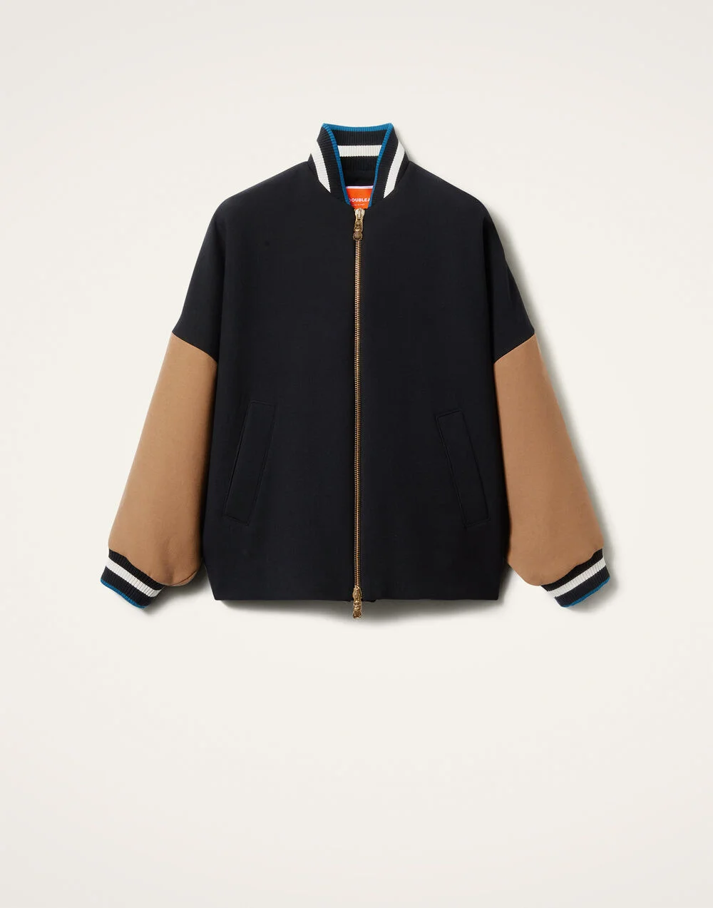 Debbie Harry called - she wants her bomber back. With a slouchy but structured fit with a slightly high-low hem and ribbed knit collar and cuff, this more tailored take on a classic jacket shape is how Italians do oversized outerwear. The decadence is in the details on this beauty, bella - note the intricate scarab detail on the zipper. Details & Fit - Oversized wool bomber - High-low hem - Knit cuff and collar - Divisible single zipper - Pockets on the side - 100% Made in Italy - Composition: 95% Virgin Wool 5% Polyamide - The model is 180 cm / 5′ 11″ tall and wears a size S