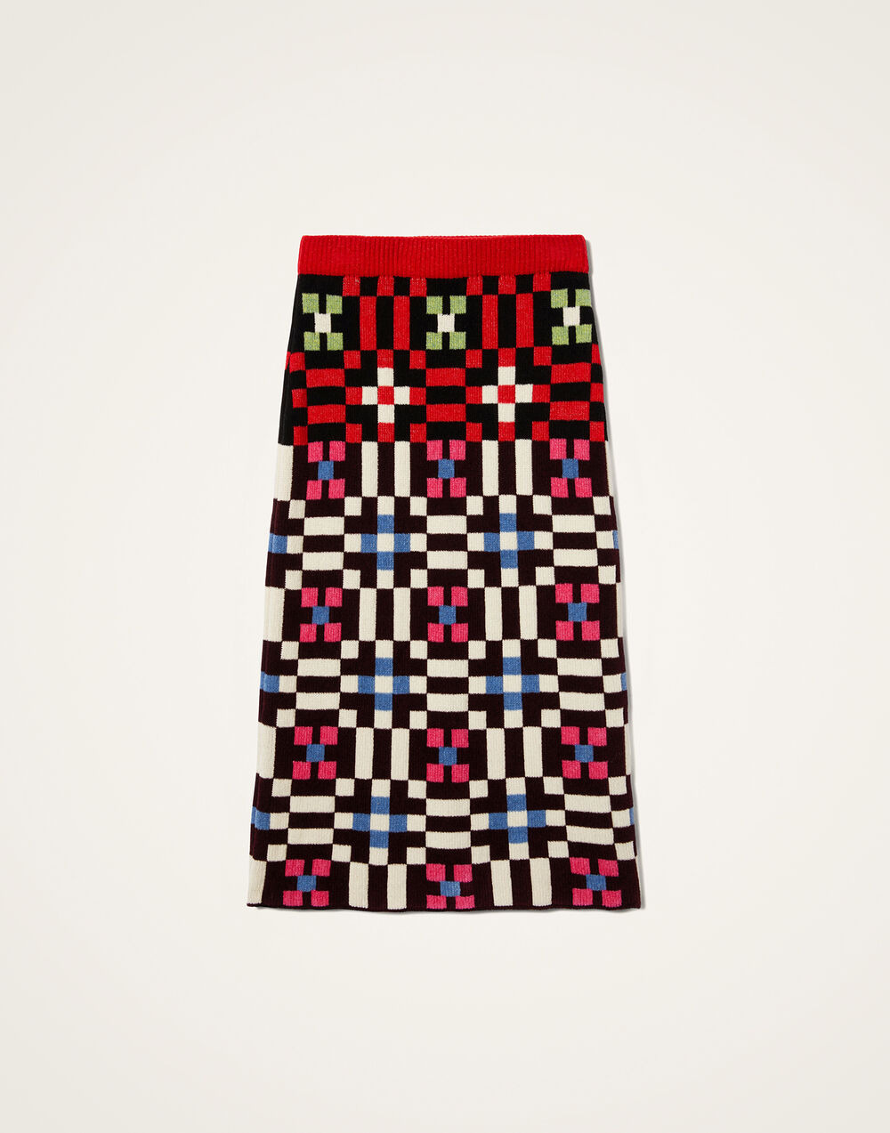 Arriving in our latest (and maybe greatest?) geometric print, Byte, this slim-fit knit skirt comes crocheted by the finest artisans in Italy. We love it with the matching Byte Turtleneck or with one of our Solid crewnecks for a bold boardroom look. Details & Fit - Slim knit skirt - Crocheted - Hits below knee - Made in Italy - Composition: 58% Viscose 39% Cotton 3% Polyamide - The model is 177 cm / 5′ 9.7″ tall and wears a size S