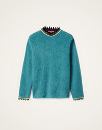 For when you’re perusing the vintage thrift stores, but your fellow bargain hunters can’t stop eyeing your sweater. The Camden Jumper is effortlessly cool, crafted from a luxurious brushed wool that is surprisingly light but crave-ably cozy. A beautiful outfit elevator in zingy turquoise to raise your vibration through winter and beyond. Details & Fit - Brushed wool - Slouchy oversized fit - Hits at mid hip - Ribbed collar - 100% Made in Italy - Composition: 61% Mohair 27% Polyamide 12% Wool - Garment length: 64cm