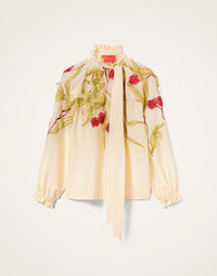 There’s nothing like a little romance to zhuzh up your wardrobe separates. Light, beautiful and unapologetically feminine, the Cerere Blouse enraptures in this glorious embroidery and is finished with a detachable foulard at the collar that can be tied, styled as a belt or let loose. We love it with jeans and a jacket or with a chic pencil skirt. Details & Fit - Embroidery - Detachable neck sash secured with loops - V neck - Puff sleeves - Composition: 100% Silk - 100% Made in Italy - The model is 177 cm / 5′ 9.7″ tall and wears a size S