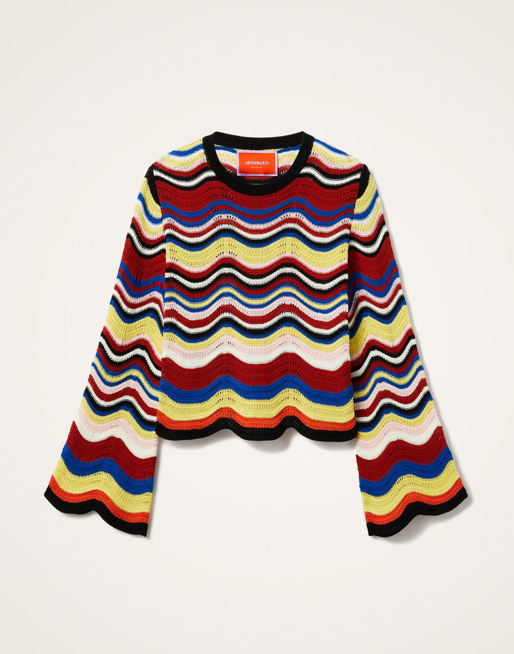 The perfect summer sweater has just landed in the form of this cute mood-boosting multicolour Chevron Crop. Layer it over your swimsuit post swim or with the matching pieces from our full Chevron knit family. Details & Fit - Cropped knit sweater - Multicolor - 100% Made in Italy - Composition: 100% cotton - The model is 178 cm / 5′ 10″ tall and wears a size S
