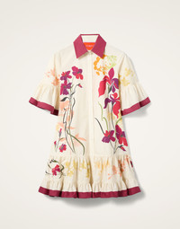 Looking for something smart but sweet, short and neat? Look no further than our Choux Dress. This is a great number for our shorter Great Gorgeous Girls, but is equally as sassy worn as a thigh-skimming style. Crafted in bouncy cotton poplin in our bold Corsage print placed by the finest artisan hands, it is lightweight, breathable and a great in-between season go-to. Details & Fit - Cotton poplin - Collar - Fluted short sleeves - Dropped waist - Tiered skirt - Hand placed print - Buttons through front - 100% Made in Italy - Composition: 100% Cotton - Garment length: 90cm - The model is 180 cm / 5′ 11″ tall and wears a size S