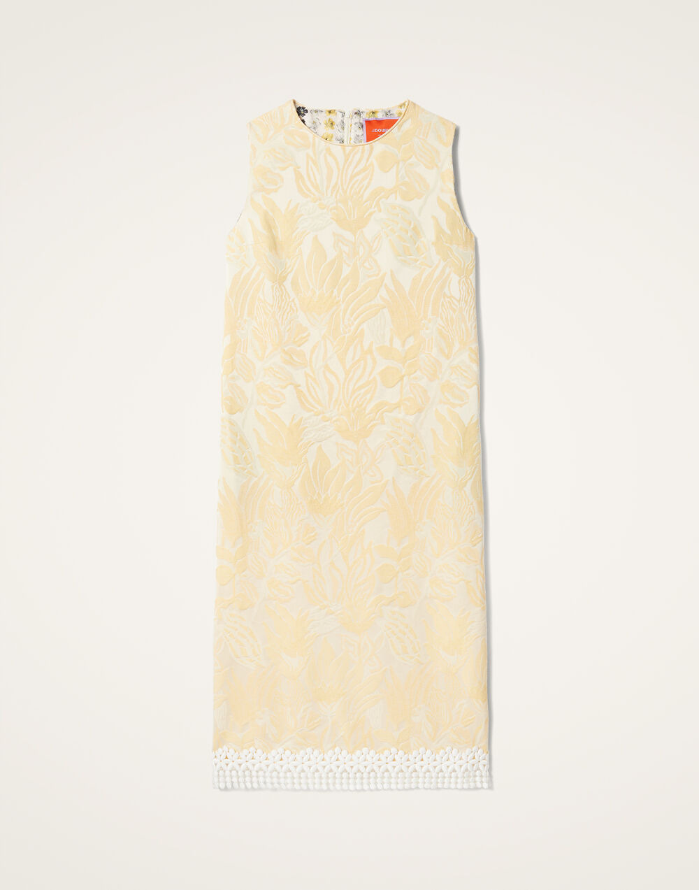 Need a boost? Skip the ginger shot and head straight for this stunner. All about giving you a kick in the happy pants, the Column Dress is a total delight for the senses crafted in textured jacquard. Its straight column shape doesn’t cling and is friendly on all figures, while a slit in the floor-length skirt (at the back) means it’s still good for shimmying. Details & Fit - Jacquard - Round neck - Sleeveless - Column shape - Midi length - Slit at back - 100% Made in Italy - Composition: 64% Cotton 36% Recycled Polyester - Garment length: 115cm - The model is 175 cm / 5′ 9″ tall and wears a size S