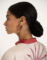 A simple accessory can go a long way to elevating any outfit. The Mini Dew Earrings delivered in this studded colored resin are our new go-to aesthetic amplifiers, perfect with a monochrome look or to add extra oomph to a maximalist look. Details & Fit - Hoop earrings with gold studs along exterior - Butterfly Closure - Composition: 75% Resin 25% Brass - Made in Italy