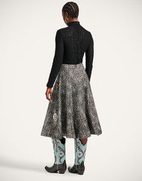 A Skatergirl skirt with a sophisticated spin, this classic silhouette comes in glorious printed embroidery. Wear it with our No Fuss Cardigan for an oversized contrast or with tights for a sweet September-to-May look. Details & Fit - Emrboidery - Mini Skirt - No pockets - Hits mid thigh - Composition: 31% Viscose 26% Cotton 19% Acrylic 9% Polyamide 4% Other Fibers 4% Polyester 4% Mohair 3%Virgin Wool - 100% Made in Italy - The model is 178 cm / 5′ 10″ tall and wears a size S