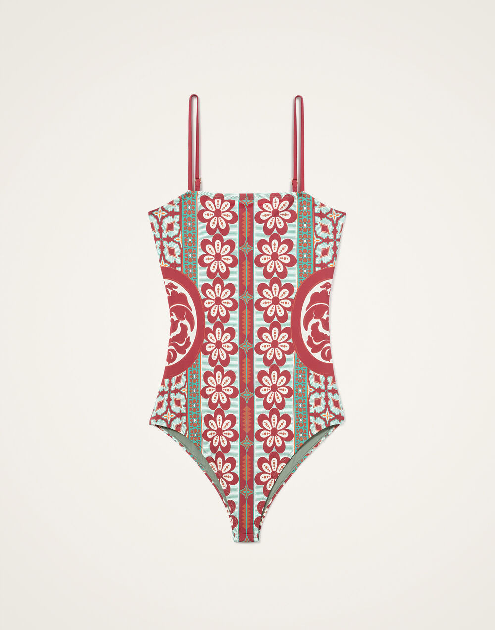 When you’re holidaying in paradise, shouldn’t your swimsuit be paradise too? Elle is designed for va-va-voom vacations with an elegant square neckline, slim spaghetti straps and a flattering construction that pulls you in at the waist. New for your next escape in this ultra-sophisticated hand-placed Pagoda print, the only thing that would make it better is if it reversed to give you a second swimsuit in one. Oh wait… Details & Fit - Italian supreme Lycra - Square neckline - Spaghetti straps - 100% Made in Italy - Composition: 74% Polyamide 26% Elastane - The model is 178 cm / 5′ 10″ tall and wears a size S