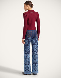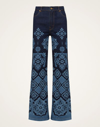 La DoubleJ does denim! Designed for those looking to elevate this everyday essential, these are not your average flares. With a super high waist that hugs your curves in all the right places, these are a modern take on a retro classic, arriving in our exquisite hand-placed, laser-printed Corte print which keep this dark denim from feeling anything but basic. Falling straight to the knee before opening up into a wide, romantic bell-bottom, these beauties have a little stretch built in, so you can channel your inner Studio64 without diminishing their booty-boosting shape. We’re partial to pairing it with our Sisterhood Bomber, but think these are print perfect with our Boy Shirt or any classic tee already in your closet. To help you seize the day the Italian way, you'll receive a free, special Carpe Denim Weekly Joy Journal so that you can plot out your daily pick-me-ups in high-vibe style. For more tips on what to wear with your fabulous new pair of jeans, check out our guide on How to Style Your Denim here . Details & Fit - High waist - Button fly and zip closure - Stretch denim - Wide flare - Laser printed - Pockets in front with fifth internal piccolo pocket - Embroidered back pockets - 100% Made in Italy - Composition: 100% Cotton - The model is 179 cm tall and wears a size 26 - Garment length: 112cm