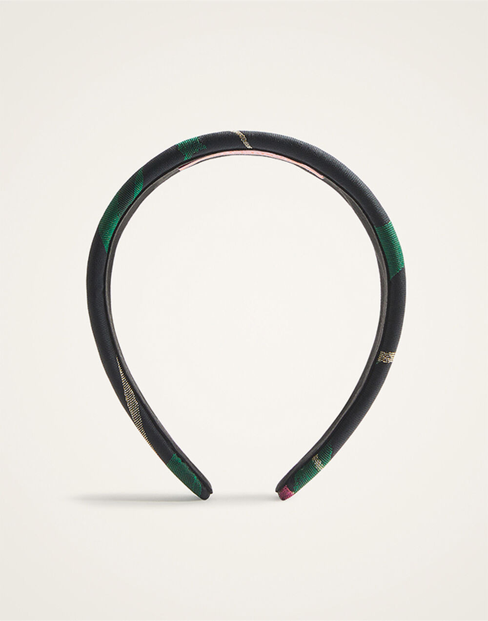 For those looking for a pop of print but not the volume of our Rapunzel or Medici Headbands, we present to you the Flat Headband, crafted in our shimmering Bamboo jacquard. Simply slide on and stun. Details & Fit - Jacquard - Flat headband - One size - 100% Made In Italy - Composition: 50% Polyester 25% Silk 19% Viscose 5% Metal Polyester