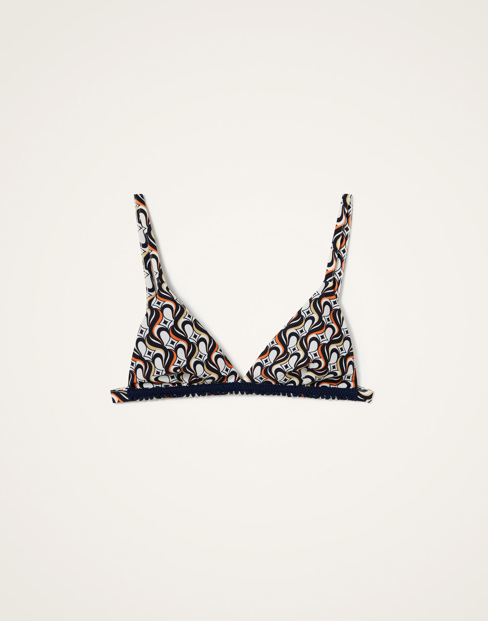 A reimagining of the classic triangle bikini top, this high-vibe version comes crafted in our toe-tapping Jive print. With its adjustable shoulder straps and bellissima embroidered band along the bottom, this top is the perfect blend of form and function (and is a touch more revealing than our other bikini tops for some appropriately Italian va va voom). Details & Fit - Lycra swim top - Triangle cups fixed on band - Clip in back - Adjustable straps - Embroidered band - Composition: 80% Polyamide 20% Elastane - The model is 178 cm / 5′ 10″ tall and wears a size S