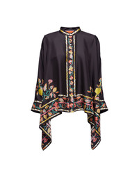 Is it a shirt? Is it a scarf? Actually, this beauty is a little bit of both. We’ve nattily transformed an Italian-made silk square scarf into a shirt design that looks great on all shapes and sizes thanks to its waterfall style fit. The fuss-free silhouette drapes off the arms with a cute Korean collar you can button up or let loose. It arrives fresh for the summer season strewn with lucky peppers and lemons in this Naples-inspired print designed by the LDJ team and placed by hand. Details & Fit - Silk twill - Mandarin collar - Buttons in front - Cuffs - Placed print - 100% Made in Italy - Composition: 100% Silk - The model is 177 cm tall and wears a size S - Garment length: 65cm
