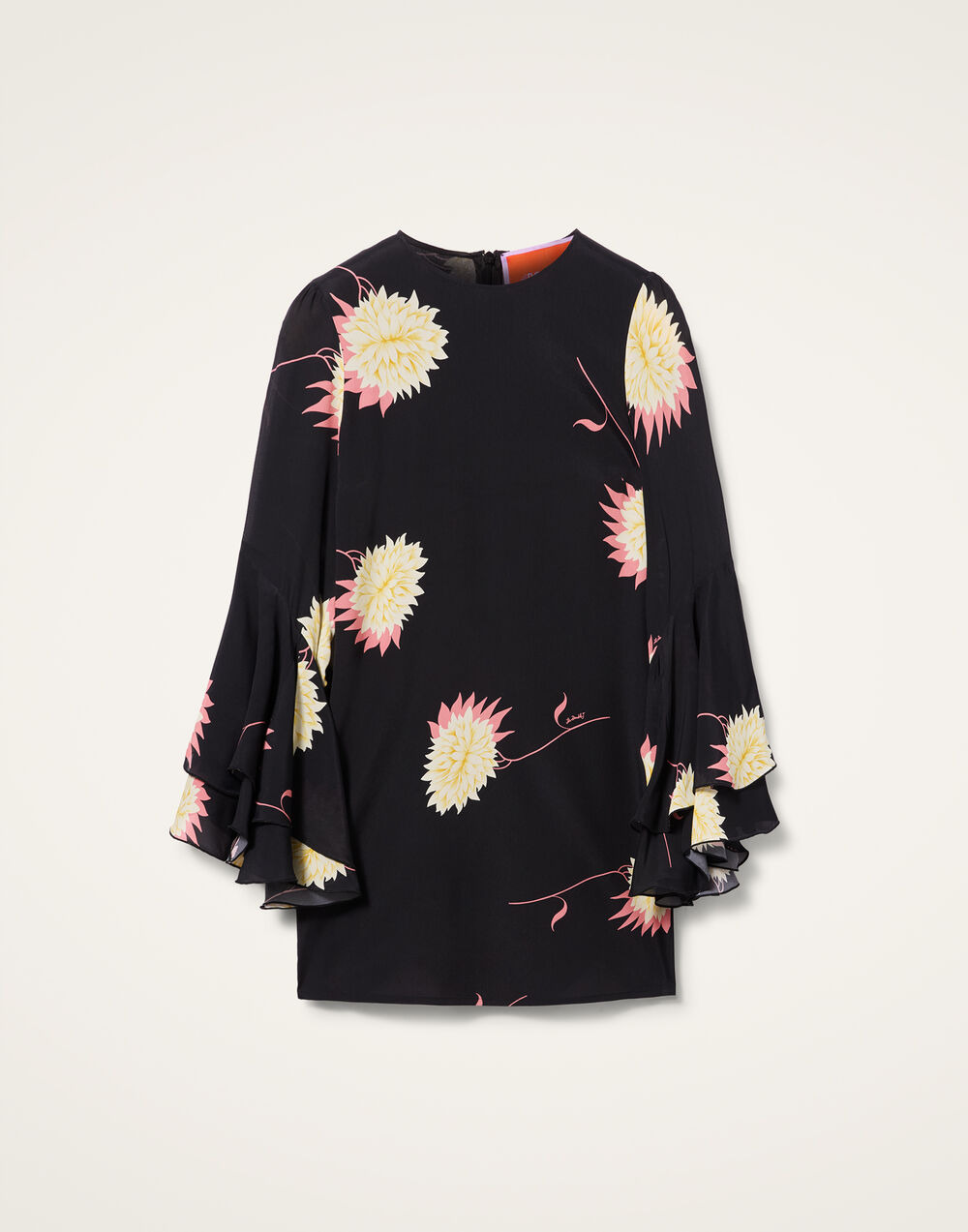 Here at La DoubleJ, we love a good office-to-aperitivo outfit, and the Friday Dress delivers. With an easy boxy shape and detailed double ruche at the wrist, this beauty has just the right balance of business and bellini. We love her with hi-top sneakers during the day and a your favorite boots at night. Details & Fit - Sable - Mock collar - Double ruche at sleeve - Mid-thigh hem - 100% Made in Italy - 100% Viscose - The model is 180 cm / 5′ 11″ tall and wears a size S