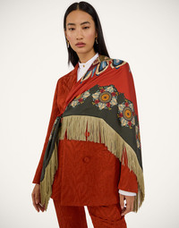 We take accessorizing seriously, sister, as evidenced by this fabulously fringed Triangle Foulard which arrives in our hand-placed prints inspired by the bounty of Mother Earth. Drape this over your shoulders as a chic shawl, tie it at the neck as a kerchief, wear it as a head scarf alla Sophia Loren....the options are endless, amore. Details & Fit - Silk twill - Triangle scarf with fringes - Hand-placed print - Composition: 100% Silk - Made in Italy - Measures 120x170 cm