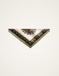 We take accessorizing seriously, sister, as evidenced by this fabulously fringed Triangle Foulard which arrives in our hand-placed prints inspired by the bounty of Mother Earth. Drape this over your shoulders as a chic shawl, tie it at the neck as a kerchief, wear it as a head scarf alla Sophia Loren....the options are endless, amore. Details & Fit - Silk twill - Triangle scarf with fringes - Hand-placed print - Composition: 100% Silk - Made in Italy - Measures 120x170 cm