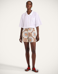 These babies are your butt’s best friend. Done in our nubby shot cotton that has a structured look but linen feel, they give smooth coverage, are high-waisted and fitted in the hips, but flare generously at the leg for a mega flattering silhouette (trust us!). Great under tights as the temperature gets a little freddo, and even better contrasted with our Poet Shirt for a cute pattern clash (minimalists, your fave crew = also great). Details & Fit - Shot cotton - Sits at the waist - Button fly - Flared leg for flattering silhouette - Four pockets - 100% Made in Italy - Composition: 97% Cotton 3% Elastane - The model is 178 cm / 5′ 10″ tall and wears a size S