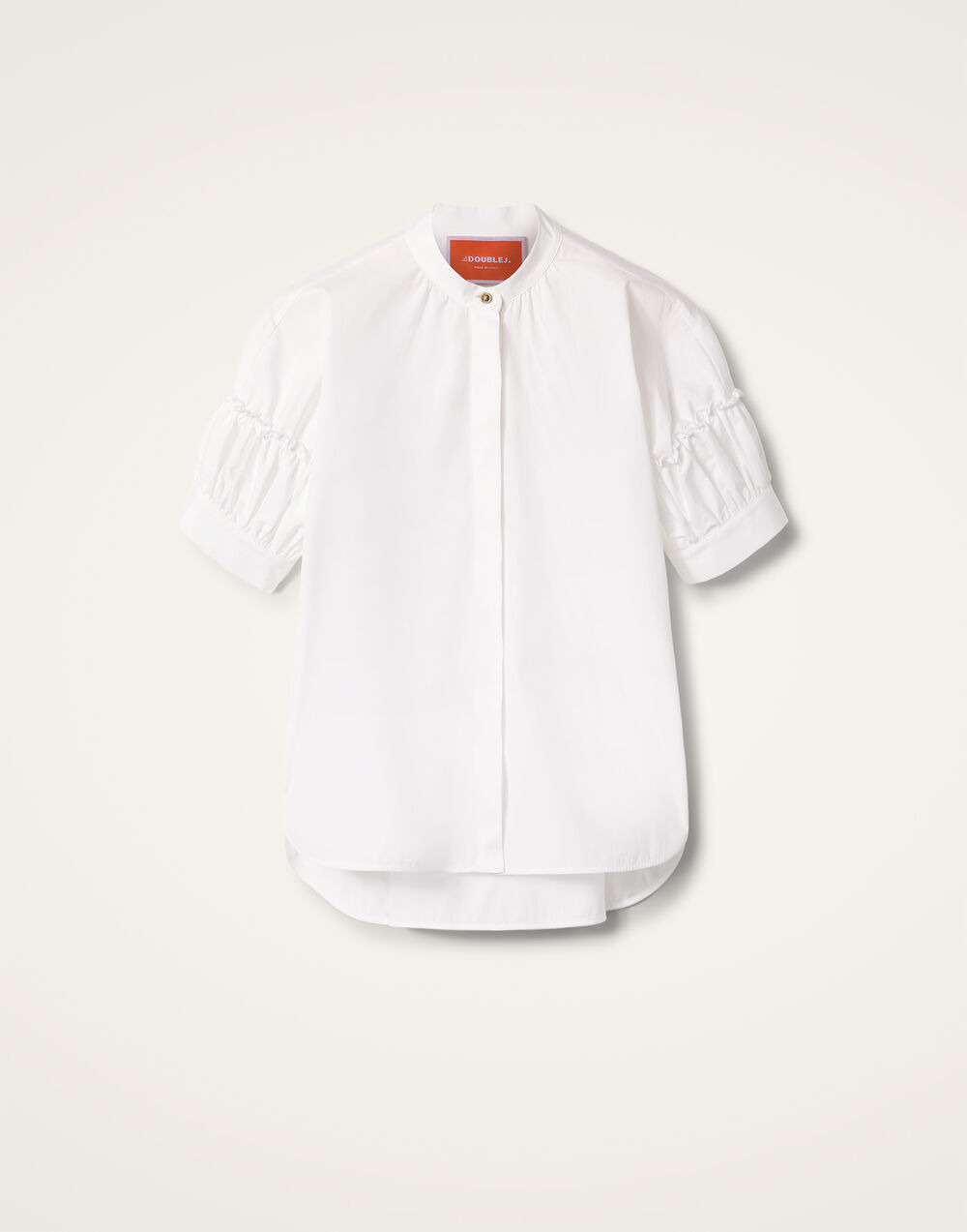 Found in pretty much every LDJ team member’s closet, the Grace Shirt is a spring wardrobe workhorse with a little extra “wow” factor. Though she looks and feels easy going she’s incredibly intricate - the chic Mandarin collar, the high-low hem, the ruffled cuff detail, the soul-expanding, energy-protecting scarab on the button. Dare we share she’s our favorite white button down? We dare. Details & Fit - Boxy white button down - High Low hem - Hidden button in front - Scarab detail on button - Ruffled cuff - 100% Made in Italy - Composition: 100% cotton - The model is 175 cm / 5′ 9″ tall and wears a size S