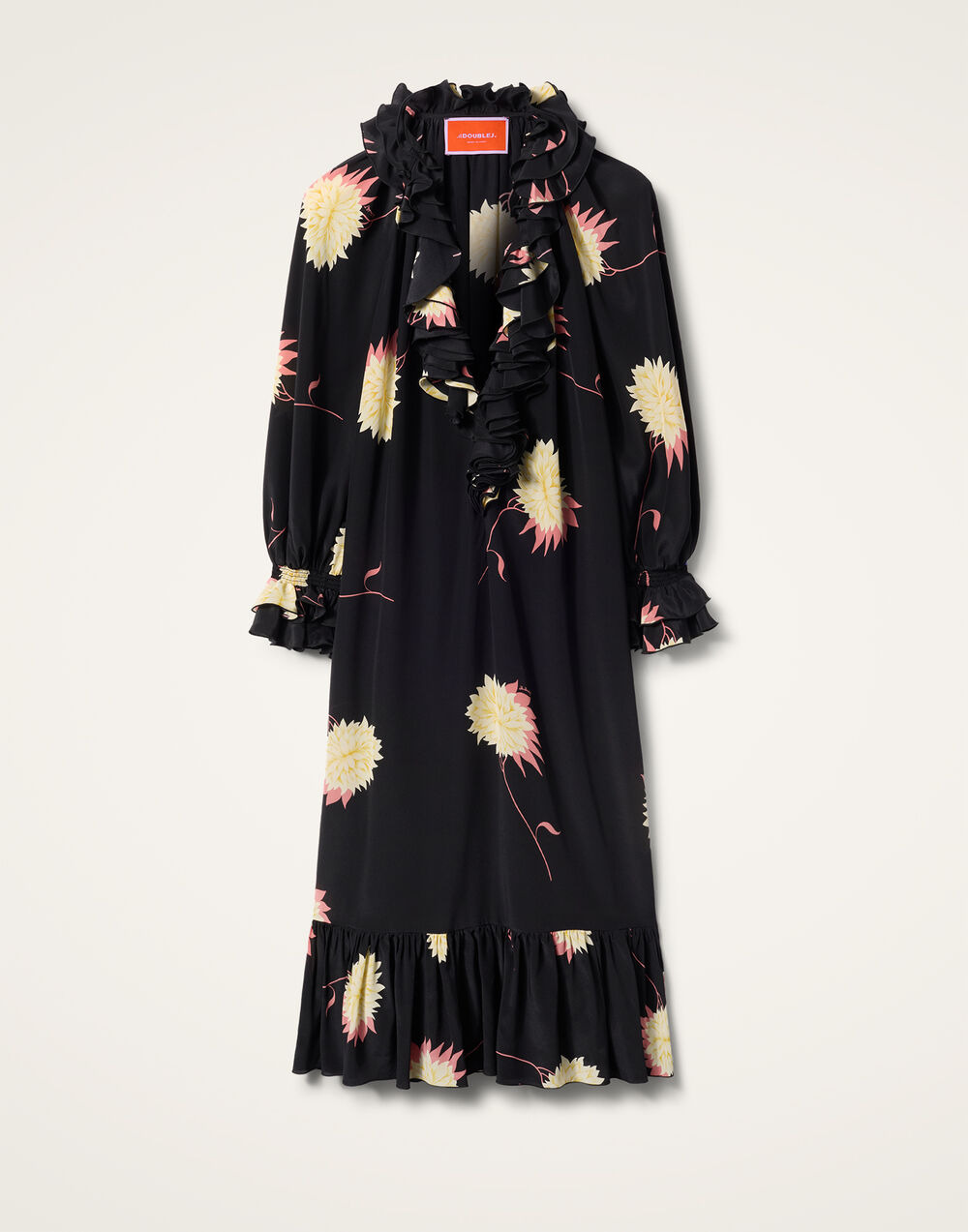With her diaphanous sleeves, voluminous shape and dangerously deep v, the Hey Jude! dress was made for muses. We’ve added ruching details all along the collar and cuff for a little added drama and crafted her in crave worthy Italian crepe de chine. It’s giving full 60’s Glastonbury goddess (before the mud bath and beer). Details & Fit - Crepe de chine - Midi dress - Ruching along cuff and collar - Elasticated cuff - Pockets - 100% Made in Italy - Composition: 100% silk - The model is 175 cm / 5′ 9″ tall and wears a size S