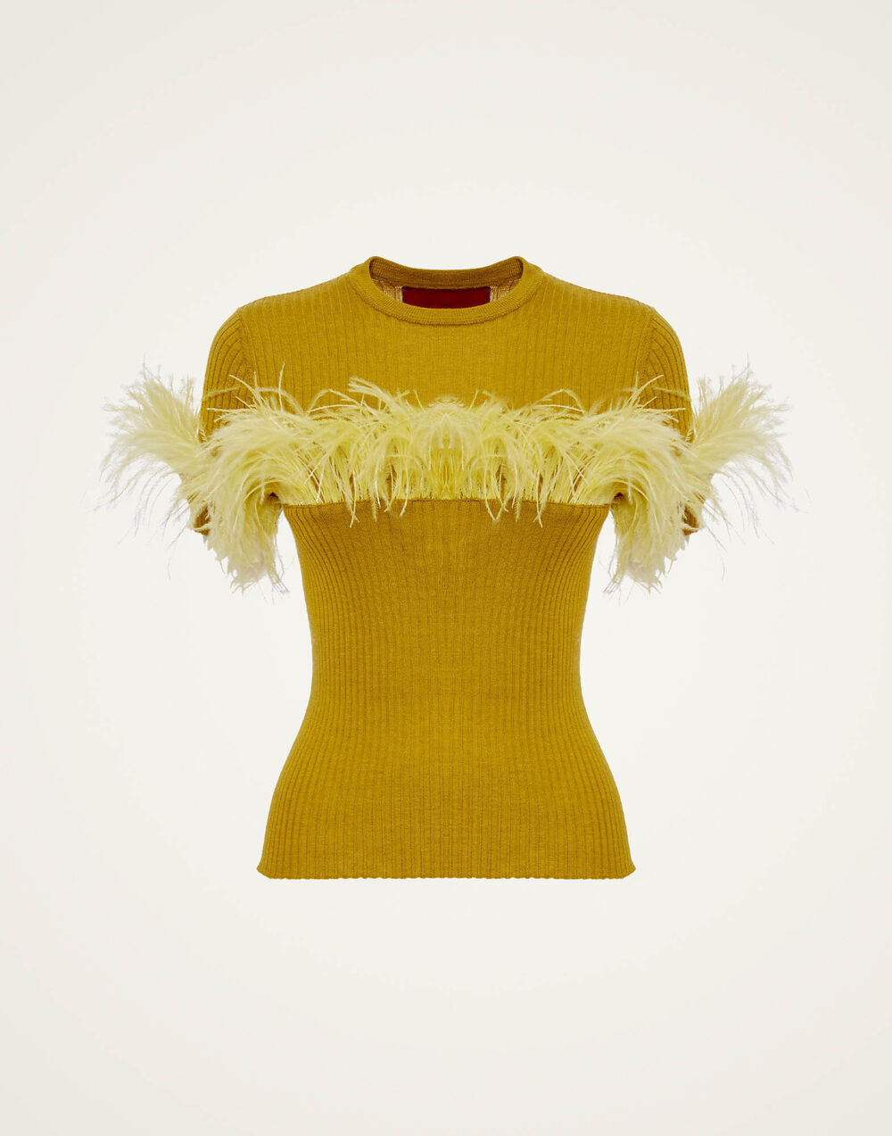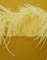 The High Kick Tee is the approval we all needed to wear feathers on the everyday. Bellissima with jeans, palazzos, skirts, sweatpants or whatever else you are loving right now, our ribbed T-shirt finished with feathers across the chest is officially the easiest way to elevate your wardrobe and send your mood soaring. Arrives in a luxurious cashmere-blend in an off-beat palette of hues for the full LDJ sensory experience. Details & Fit - Cashmere silk knit - Short sleeves - Ostrich feather trim across chest and sleeves - Ribbed - Crew neck - 100% Made in Italy - Composition: 68% Cashmere 30% Silk 2% Ostrich Feathers - The model is 179 cm tall and wears a size S - Garment length: 55cm