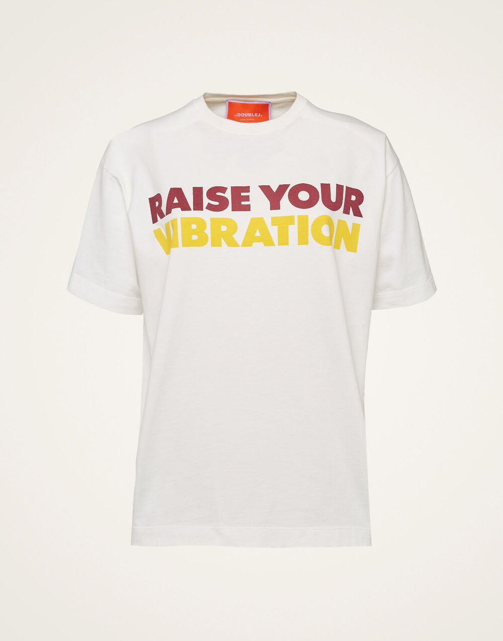 We like to put some soul into our slogan tees, and this particular wardrobe staple might be our most spirit elevating to date. “Raise Your Vibration” is an ethos so close to our hearts with literally printed it across our chests with this one, crafted from the finest Italian cotton with our motto in radiant rainbow hues to boost the mood of everyone who wears it. Cut in an oversized, boxy shape, this tee oozes off-duty cool, pairing perfectly with our new DoubleJ Joy Denim as well as a sleek black pant for when you want to energize your office space. Want some tips on how exactly to raise your vibration? Just turn around - on the back you’ll find a flurry of tools on how to elevate your energetic state. Details & Fit - Cotton jersey - Oversized boxy shape - Slight stretch - White base with printed rainbow text on front and back - 100% Made in Italy - Composition: 100% cotton - The model is 181 cm tall and wears a size S