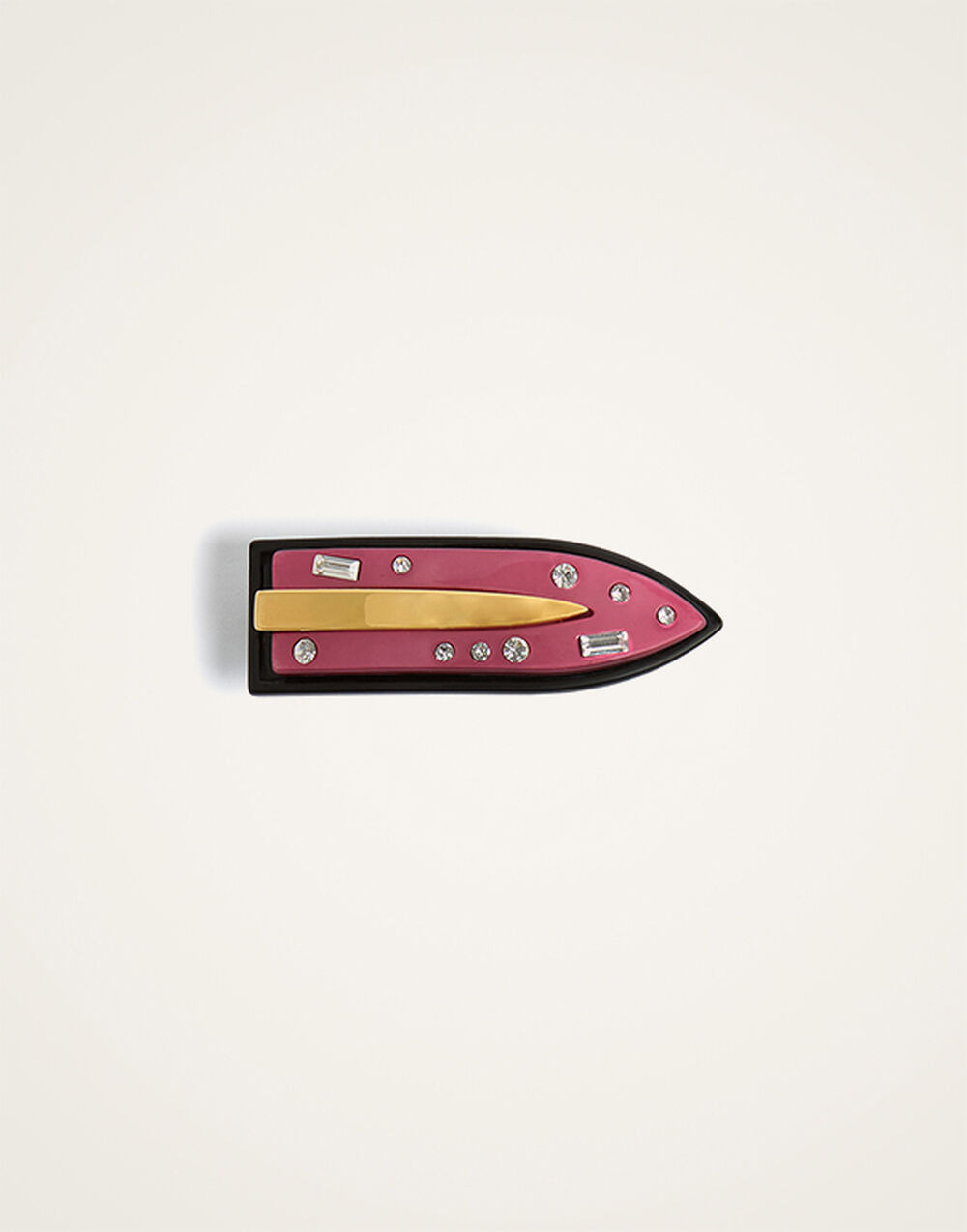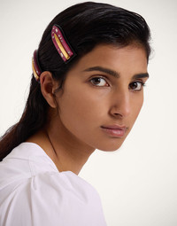 We're getting nostalgic for the Nineties around here, and so have crafted some high-vibration vintage-inspired hair clips to add a youthful pop of color to our everyday wardrobe. But don't mistake these for your basic teenage accessories, amore. These come crafted from super chic colored resin with brass studs for a little more edge. Details & Fit - Resin hair clip with brass studs - Composition: 40% Polyester 35% Acrylic 16% Brass 5% Steel 4% Glass - Made in Italy