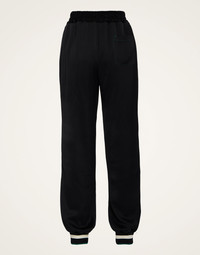 When she wasn’t strutting the catwalk, or performing on stage, Grace Jones was always the queen of off-duty cool. The Jones jogger is an elevated take on a classic athleisure silhouette (appropriate given its namesake) tailored to accentuate your silhouette and crafted from solid black Italian satin for extra night-out oomph. With an elasticated ribbed waist and cuffed she’s and effortless, throw-on-and-glow wardrobe essential, perfect with one of our slogan sweaters or with the Jones Jacket for a seriously cool-girl office-to-aperitivo suit. Details & Fit - Le Divine capsule with Viviana Volpicella - Mid waist - Tailored jogger - Ribbed cuff and waist - 100% Made in Italy - Composition: 100% viscose - The model is 178 cm / 5′ 10″ tall and wears a size S