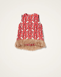 As far as interesting silhouettes go; this top may win the gold star. The asymmetrical hem, trapeze silhouette and marabou feather trim creates an alluring form. In shot cotton which has a textured surface feel, it’s undoubtedly upscale but looks equally as great with some jeans and flats. Details & Fit - Shot cotton - Unlined - Sleeveless top - Ostrich feathers on bottom hem - Composition: 98% Cotton, 2% Elastane - The model is 178 cm / 5′ 10″ tall and wears a size S