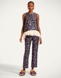 As far as interesting silhouettes go, the La Scala Top may win the gold star. Prime for opera invites, cocktail soirees, Milanese coffee runs and beyond, it arrives in our structured jacquard with an alluring asymmetrical hem and contrast marabou feather trim. Jeans and ballet pumps girls will find it slips in effortlessly with any denim rotation; maximalist mavens seek out the stunning Pencil Skirt to match. Details & Fit - Jacquard - Unlined - Sleeveless top - Ostrich feathers on bottom hem - Composition: 88% Polyester 7% Silk 5% Polyamide - Made in Italy - Garment length: 72cm - The model is 180 cm / 5′ 11″ tall and wears a size S