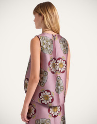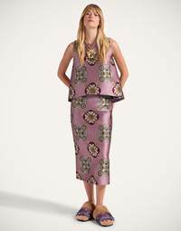 As far as interesting silhouettes go, the La Scala Top may win the gold star. An asymmetrical trapeze shape that is the definition of alluring on babes of all shapes and sizes, it’s crafted in our sumptuous jacquard for a hint of structure. A no-brainer for upscale invites styled with the matching Pencil Skirt, it’s also great with denim for all you maximalist city prowlers. Details & Fit - Jacquard - Sleeveless top - Asymmetric hem - 100% Made in Italy - Composition: 72% Polyester 28% Silk - Garment length: 61cm - The model is 180 cm / 5′ 11″ tall and wears a size S