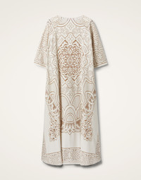 Make way for dreamtime dressing with this ethereal take on our MuuMuu Kaftan, ridiculously romantic and exquisitely embroidered in our light white cotton lace. Unlined to highlight all those gorgeous details, this big volume bella begs for a black tie entrance, with an ultra-generous silhouette that will flow behind you as you float around the room. Every bit as heavenly thrown over your swimming costume for the most divine poolside look the Mediterranean has ever seen. Details & Fit - Embroidered cotton lace - Generous fit - Pull-on - Wide sleeves that hem at elbow - 100% Made in Italy - Composition: 80% Cotton 20% Polyester - The model is 178 cm tall and wears a size S - Garment length: 140cm