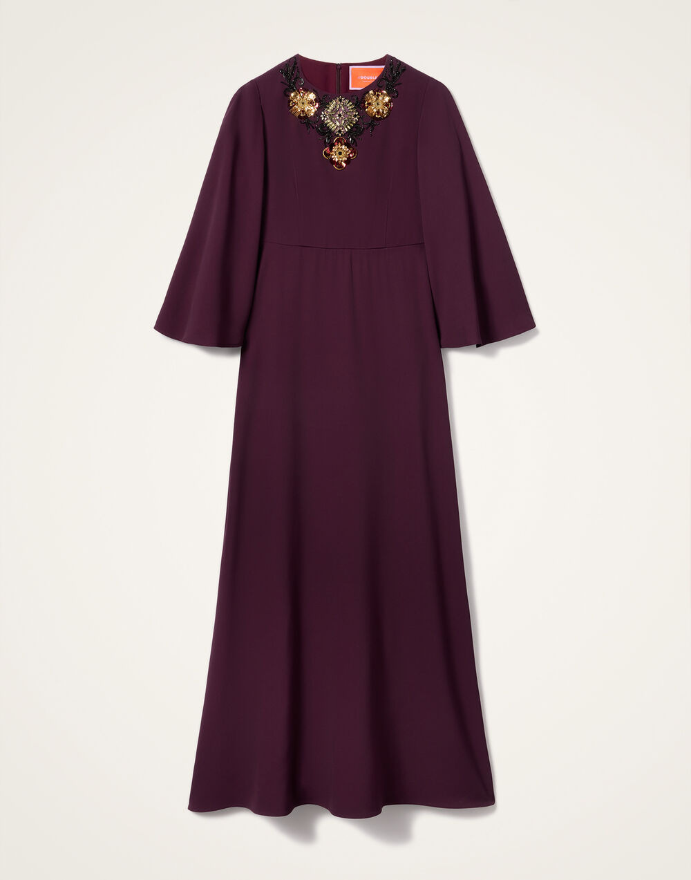 A little bit fancier than her mid-length sister, the Sorella Long Dress is an elongated take on our best-selling shape. We've got our eye on it for its flattering hourglass fit that truly nips the waist and forgiving bell sleeves that waterfall from slim-cut shoulders. Cut from our uber elegant Italian sable satin in this beautiful burgundy hue, we recommend dialing things up a notch with vintage jewels for extra wow. Details & Fit - Sable satin - High neck - Bell sleeves - Hits at ankle - Concealed side pockets - Hourglass shape - 100% Made in Italy - Composition: 100% viscose - The model is 180 cm / 5′ 11″ tall and wears a size S