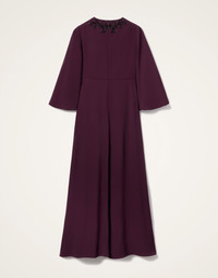 A little bit fancier than her mid-length sister, the Sorella Long Dress is an elongated take on our best-selling shape. We've got our eye on it for its flattering hourglass fit that truly nips the waist and forgiving bell sleeves that waterfall from slim-cut shoulders. Cut from our uber elegant Italian sable satin in this beautiful burgundy hue, we recommend dialing things up a notch with vintage jewels for extra wow. Details & Fit - Sable satin - High neck - Bell sleeves - Hits at ankle - Concealed side pockets - Hourglass shape - 100% Made in Italy - Composition: 100% viscose